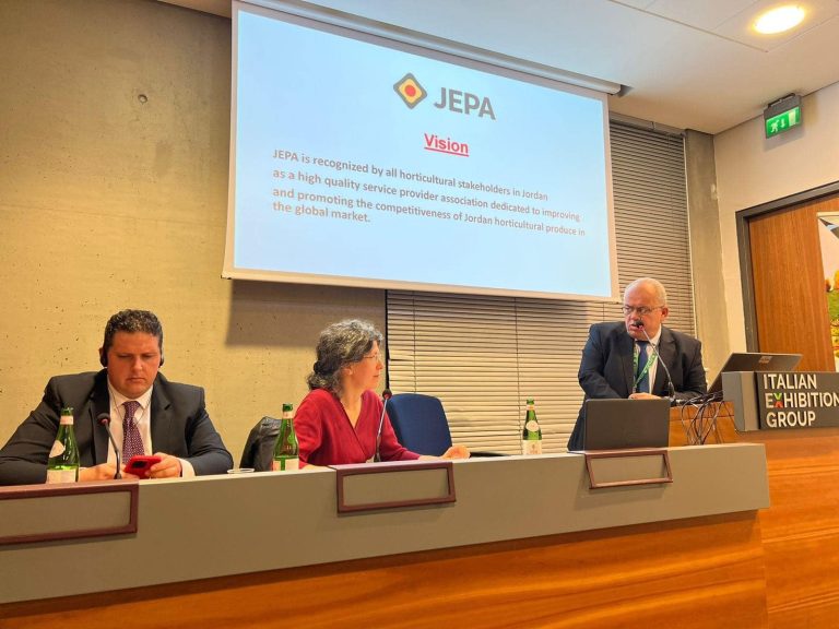 The Jordanian enterprises that participated in the MACFRUT exhibition had the chance to present their services and products and to get a business opportunity through a workshop called “A Way Toward the Jordanian Agri-Food Sector, Discover It!” that was led by “MoITS, JEPA, JODA, and JSMO,” who also presented other Jordanian enterprises providing services and products in the same field.